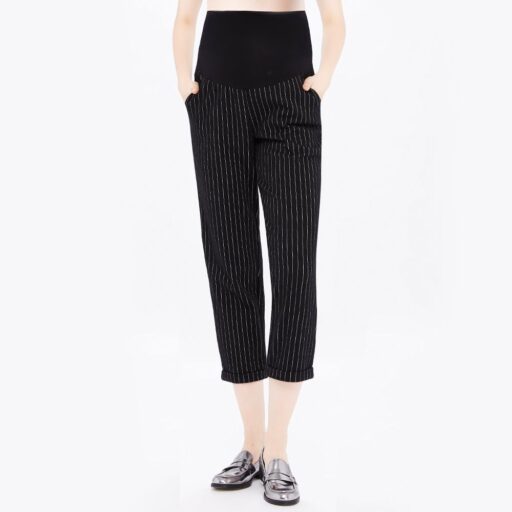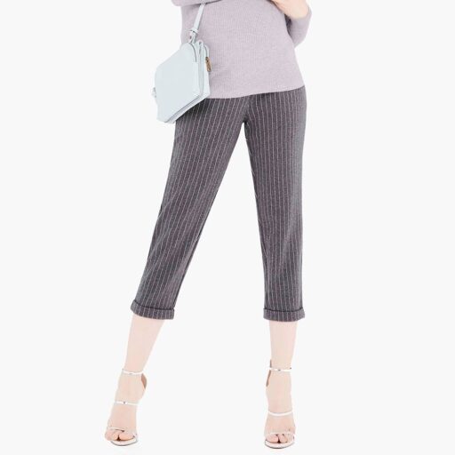Gennies 奇妮條紋西裝面料打褶九分褲(灰白條)
